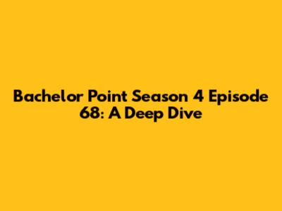 Hey guys! Welcome back to the ultimate Bachelor Point experience! We're diving deep into Season 4, Episode 68, and let me tell you, it's a wild ride. This episode is packed with the kind of drama, comedy, and heartwarming moments that we've come to expect and love. So, buckle up, grab your snacks, and let's dissect everything that went down. We'll be talking about the major plot points, the standout performances, and what this episode means for the rest of the season. Ready? Let's go!