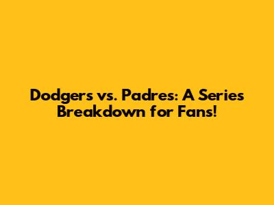 Dodgers Vs. Padres: A Series Breakdown For Fans!