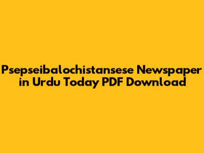 Download Today's PDF: Psepseibalochistansese Urdu Newspaper