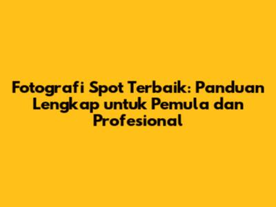 Fotografi spot adalah salah satu bentuk seni fotografi yang paling menarik dan menantang. Guys, dalam artikel ini, kita akan membahas semua yang perlu kalian ketahui tentang fotografi spot, mulai dari tips fotografi spot terbaik, teknik fotografi spot yang efektif, hingga cara memilih spot fotografi yang tepat. Jadi, siap-siap untuk menjelajahi dunia fotografi yang penuh warna dan menginspirasi!