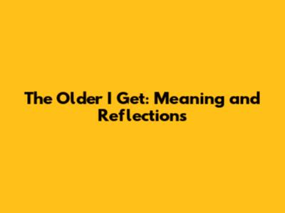 The Older I Get: Meaning And Reflections