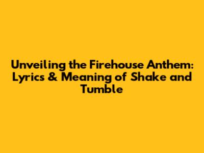 Unveiling The Firehouse Anthem: Lyrics & Meaning Of 'Shake And Tumble'